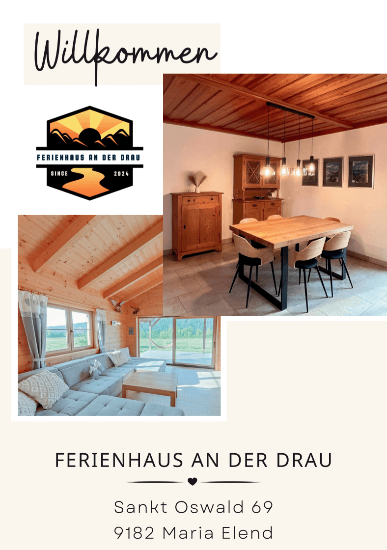 Von der Rosental Straße (Bundesstraße B85) gelangt man ins Wohngebiet “Sankt Oswald”. Direkt an der Abbiegung befindet sich das Gasthaus “Hauswirtschaft”. Die Straße “Sankt Oswald” verläuft U-förmig – in der Karte ist der Weg zum Ferienhaus orange eingezeichnet.